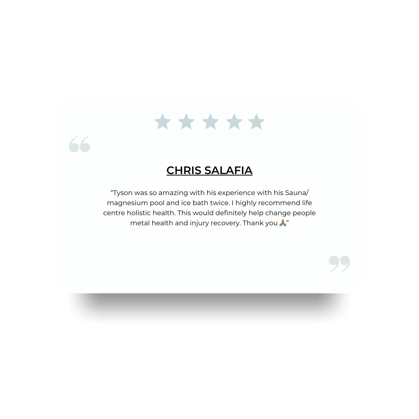 Few experiences can rival the sensation of entering our serene outdoor full spectrum infrared sauna, surrounded by the beauty of towering gumtrees. Our saunas are designed with your well-being in mind, boasting ultra-low electric and magnetic field (EMF) and extremely low frequency (ELF) features to help elevate your core body temperature, leading to a deeply revitalizing and purifying sweat session.